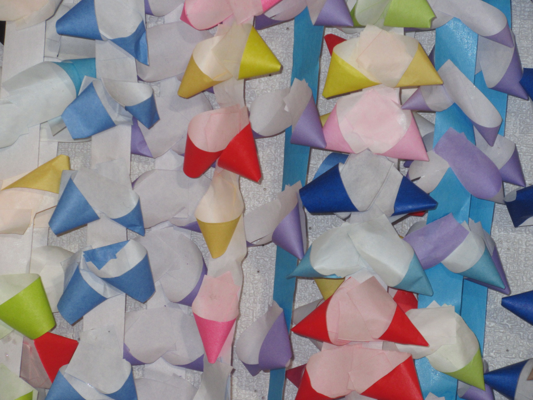 一個ずつ三角の筒を作って