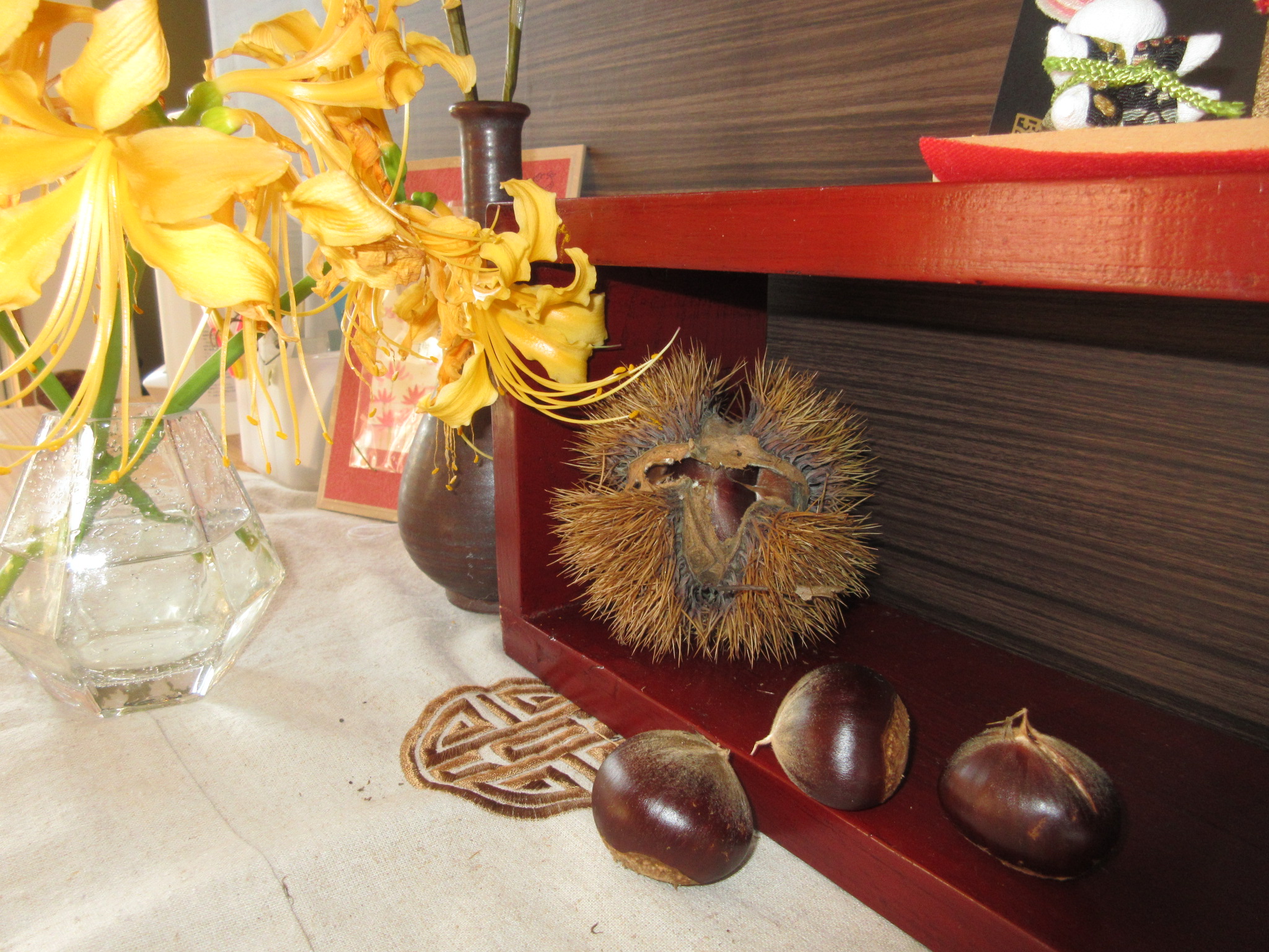 こんにちわ(*^^*)今朝デイサービスの庭を散策したら!(^^)!大きな丹波栗が2個落ちてました!(^^)!今年は、丹波栗が数少なくてそれでも見事に実が付いていたのですが(*_*)台風でたくさん(>_<)