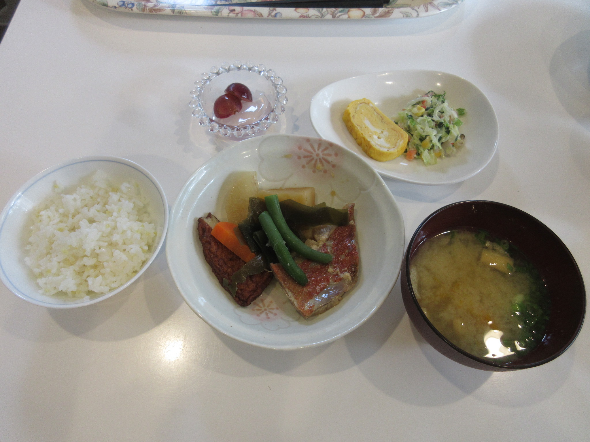 粟ご飯 味噌汁 魚の煮付け 玉子焼き