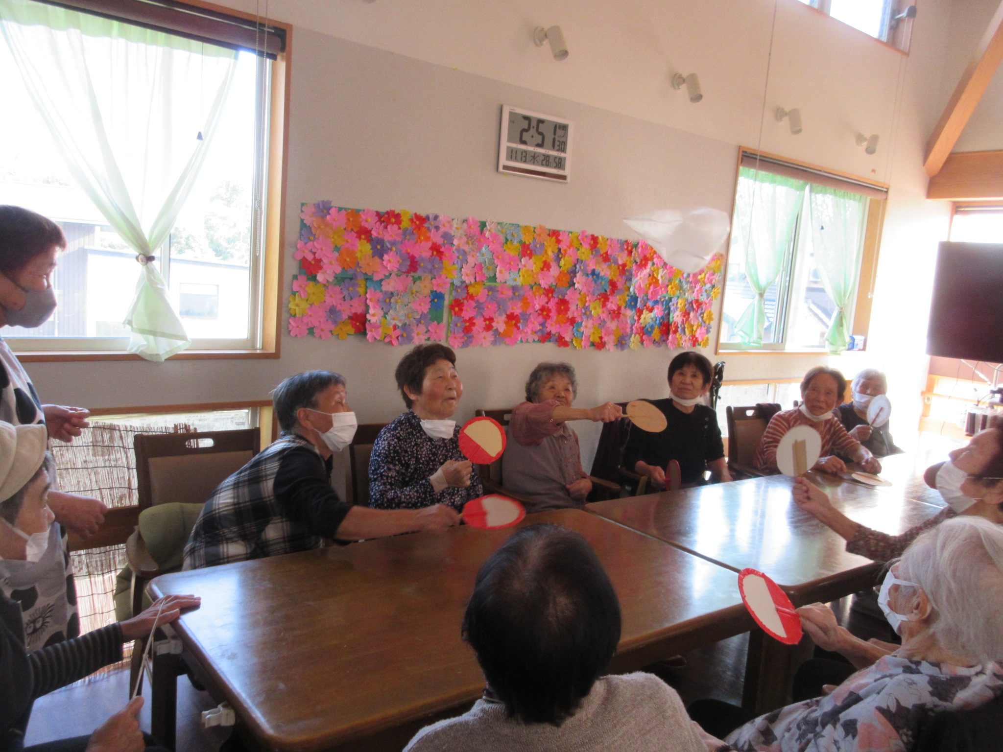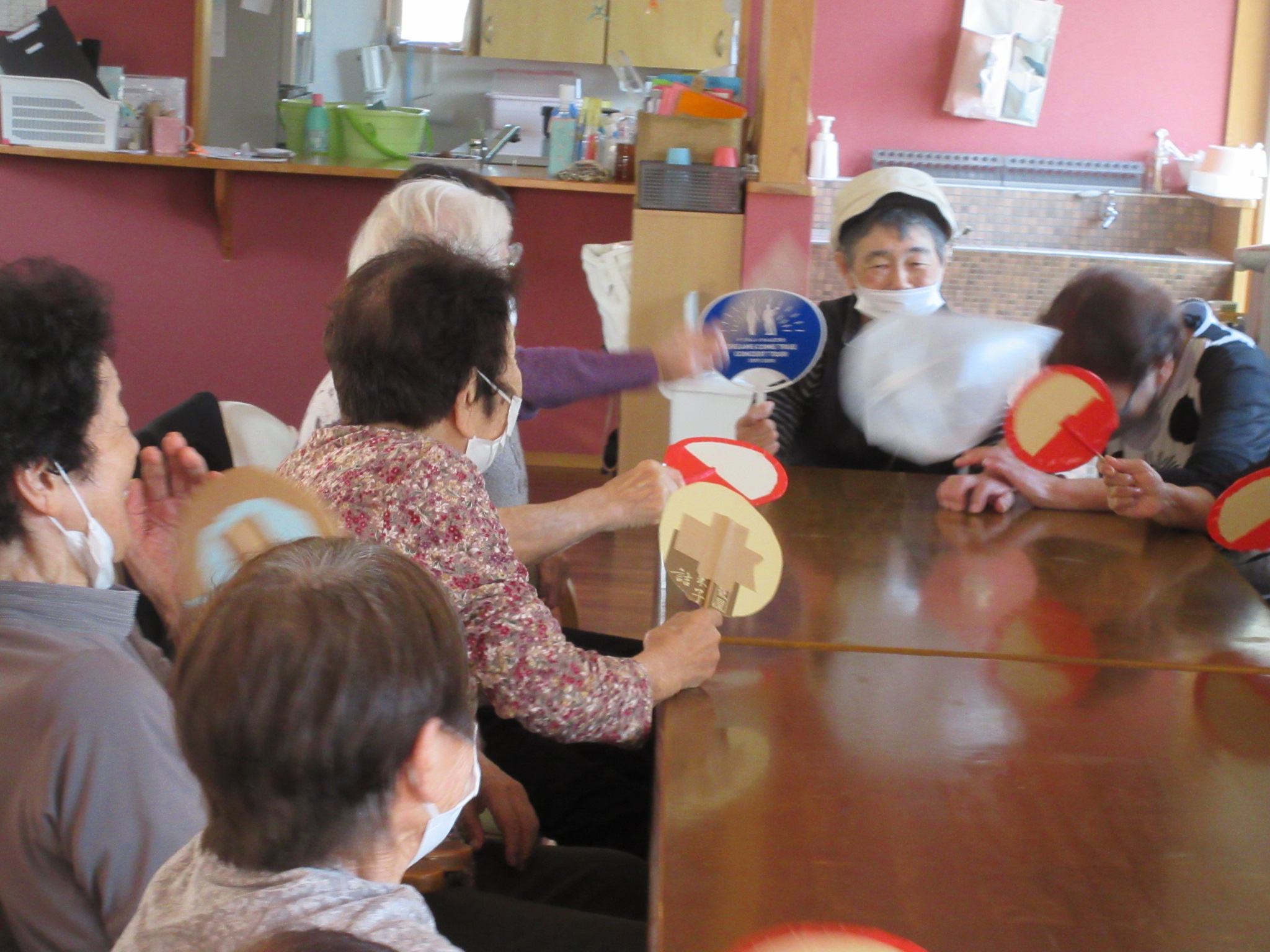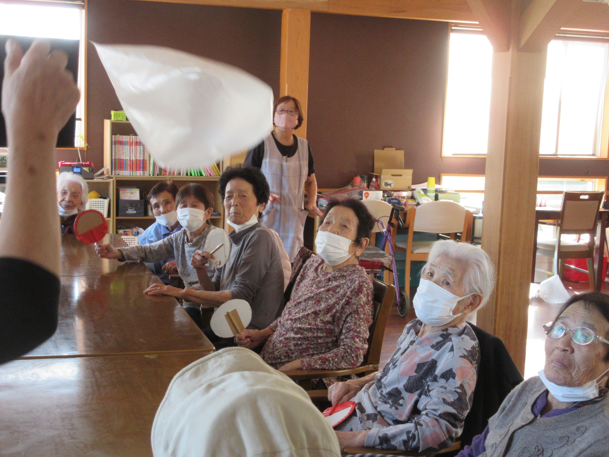 みんなで何回うちわでリレー出来るかな:-O