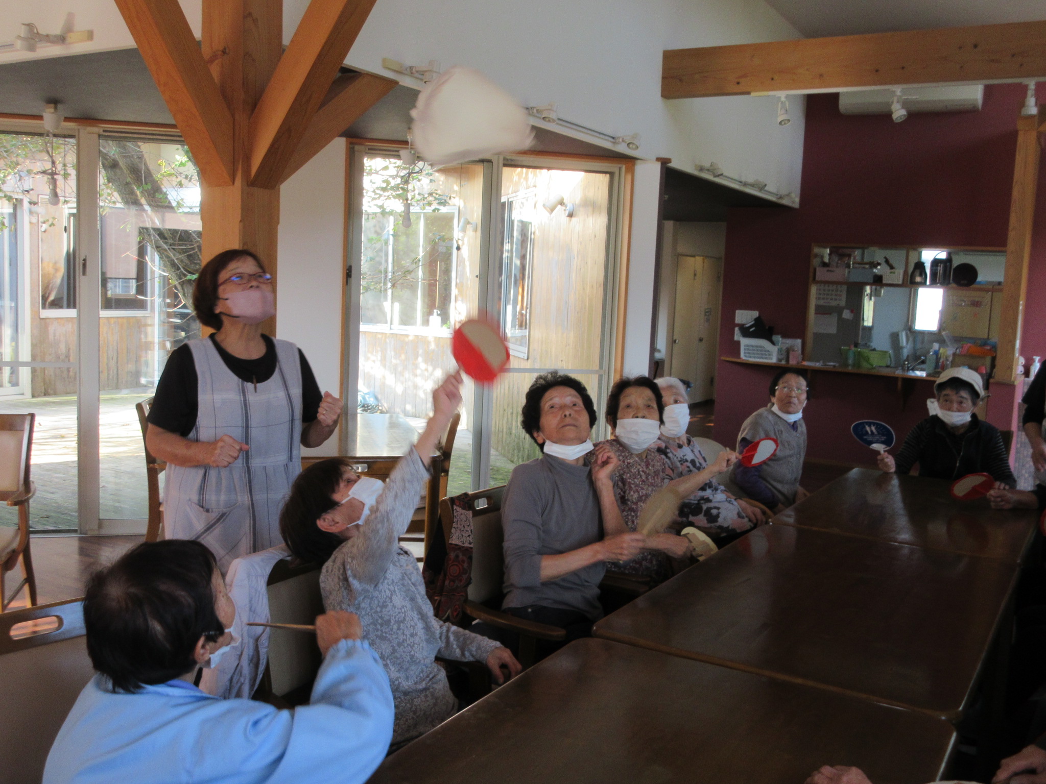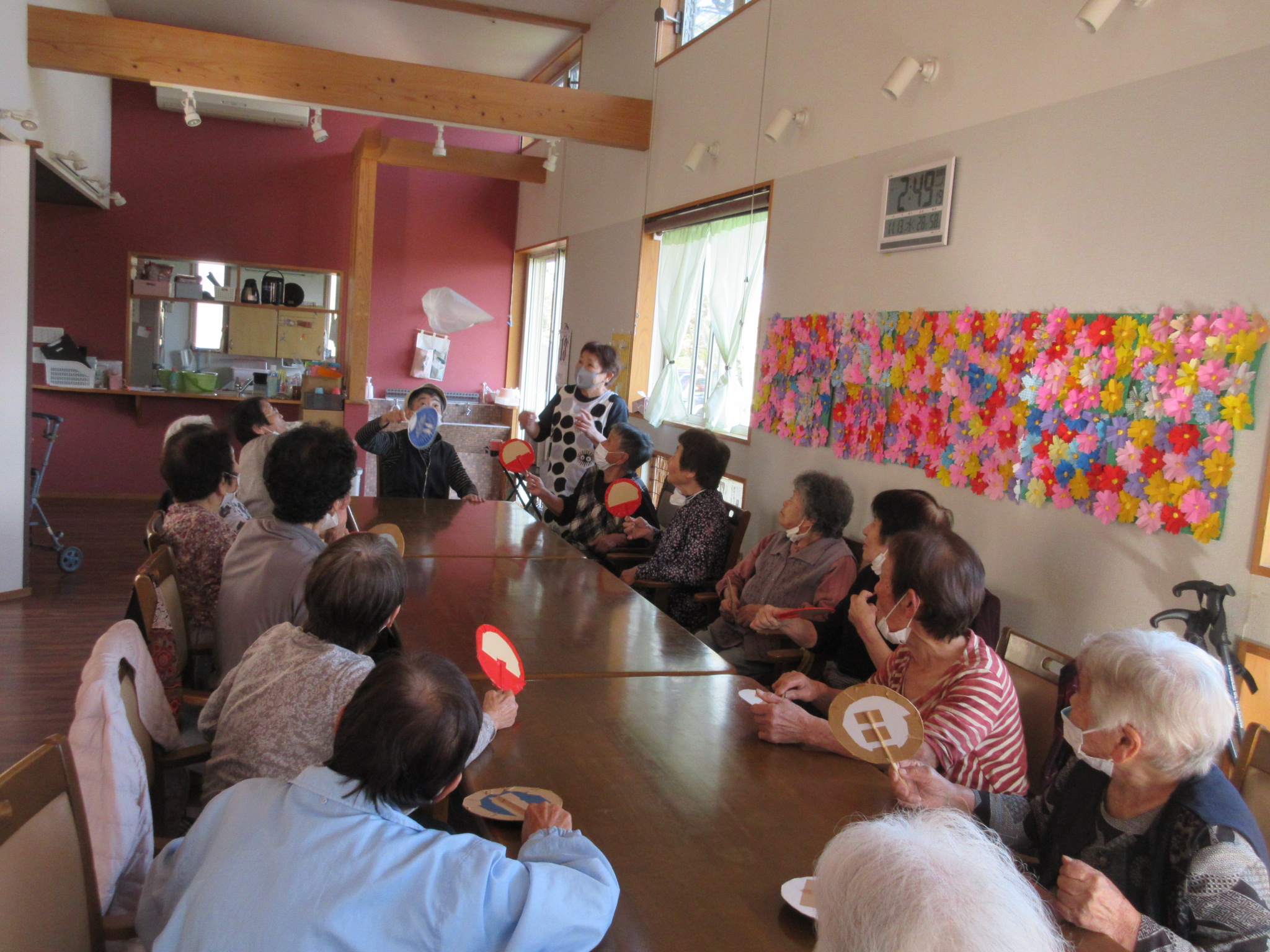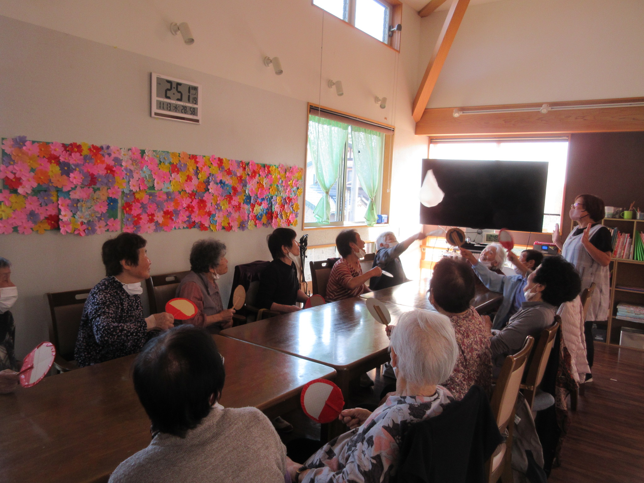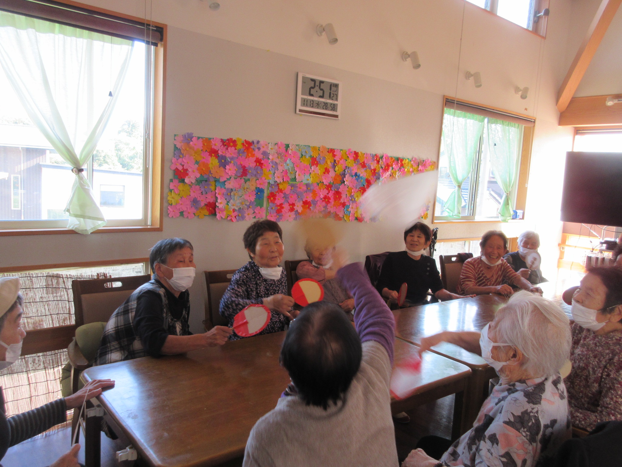みんなで何回うちわでリレー出来るかな:-O