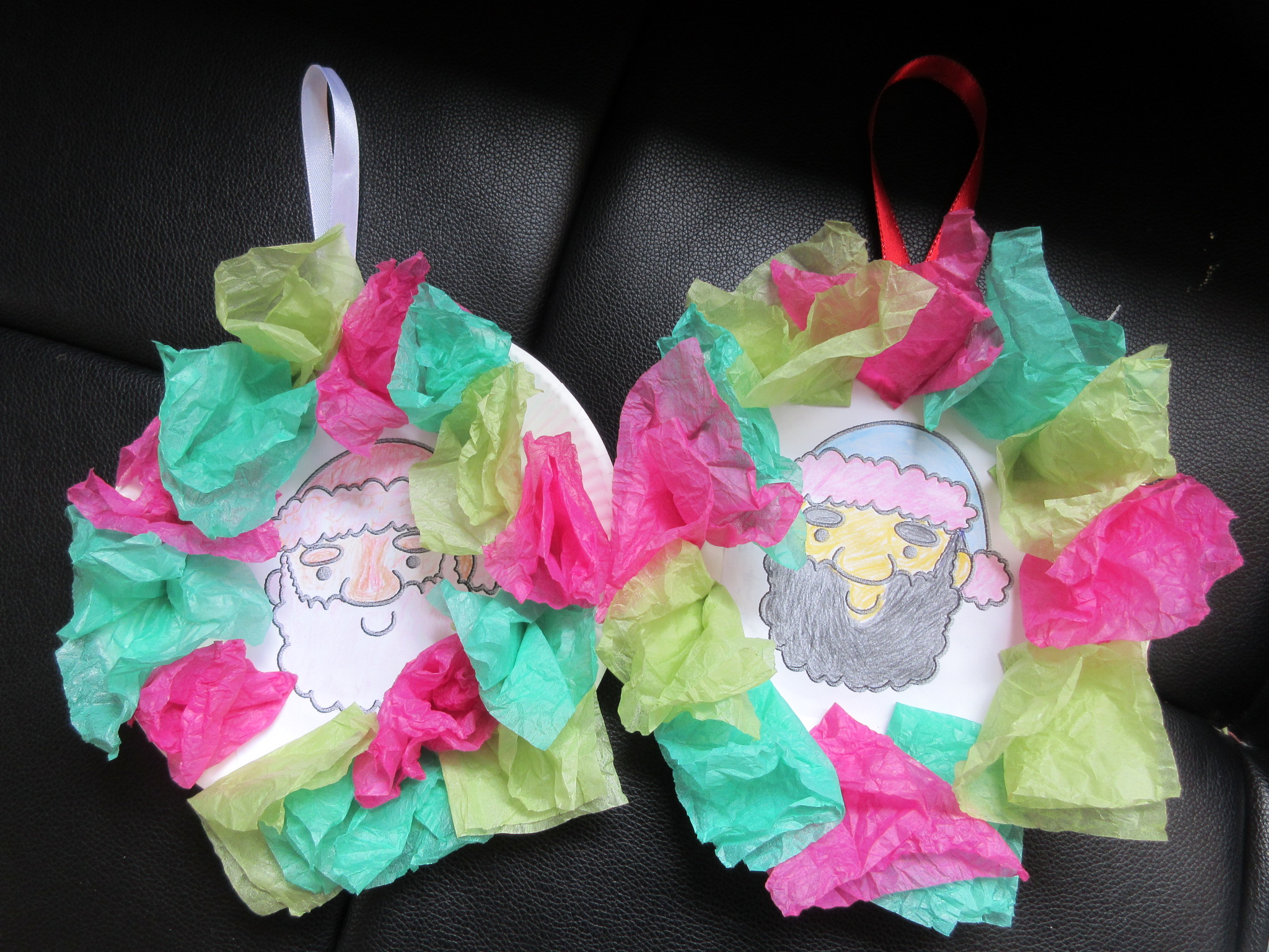 サンタさんの顔を花紙リースで