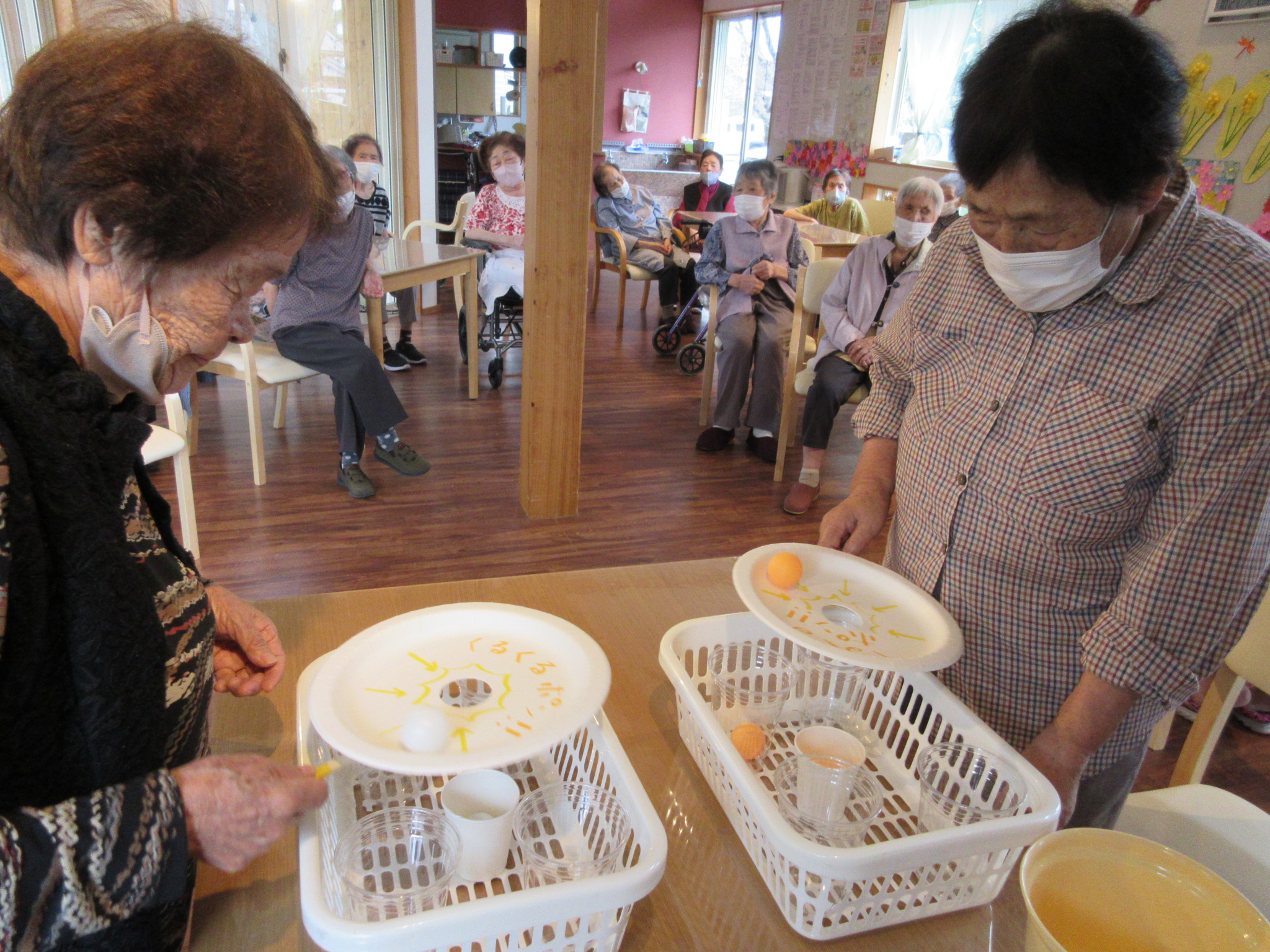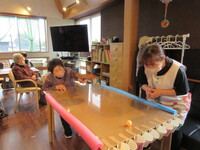 穴から下にあるコップに何個落ちるか競うゲームです(^_^)v